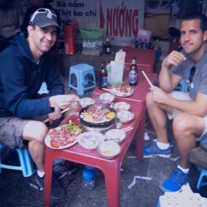 The only minor setback we had was during our last meal in Hanoi. Vietnamese people were always trying to get us to eat at their restaurant or buy their water, their clothing, their goods or anything else they were selling. Since we were in a bit of a rush to catch our ride to the airport, a restaurant owner easily persuaded us to sit down and order the BBQ’d beef for 3 people. After finishing our meal, the owner pulled out his cell phone, calculated the total, and hesitantly said we owed 1,000,000 Vietnamese Dong (or about 50 USD). If we hadn’t just spent the last 3-4 days there, we probably wouldn’t have noticed much of anything. But considering we had a similar meal the day before for about 1/10th the price and, more importantly, we had very little dong left to spend (our next stop was Cambodia), we weren’t too happy. Jeremy and I argued with the owner while Rob went back to the ATM to get additional dong out. He wouldn’t budge. |